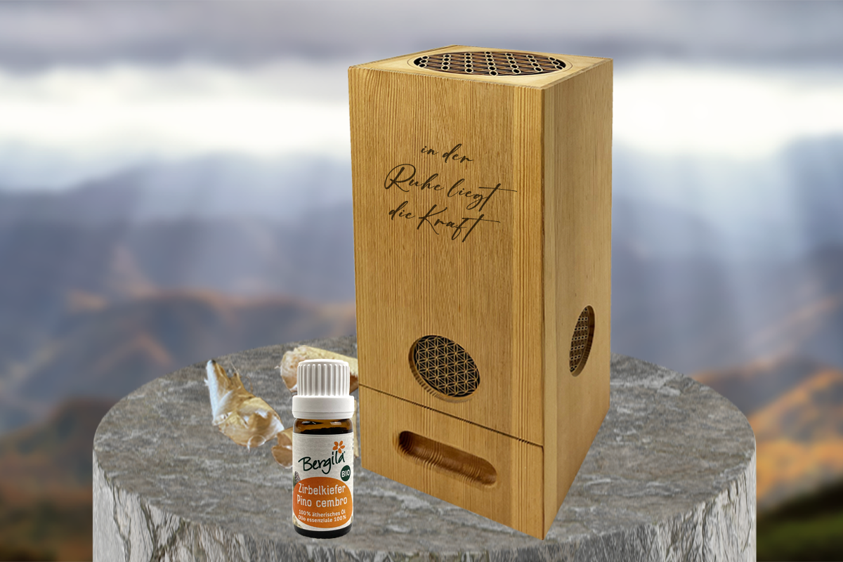 Der Arvendufter schafft ein angenehmes Klima, fördert die Produktivität und senkt die Herzfrequenz, wodurch Stress und Schlafprobleme gemildert werden. Zudem reduziert er Bakterien, Luftschadstoffe und Pilzsporen, was die Gesundheit und das Wohlbefinden unterstützt.
