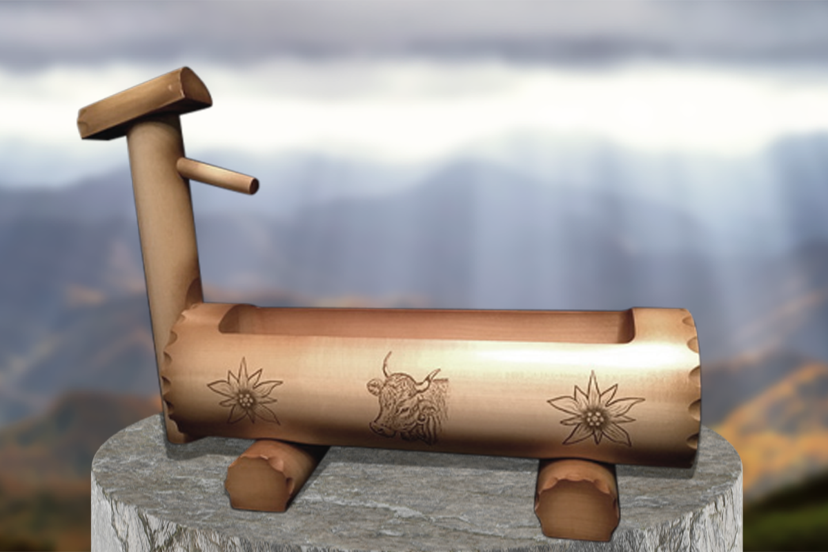Rustikaler Holzbrunnen zur stilvollen Bepflanzung von Blumen.