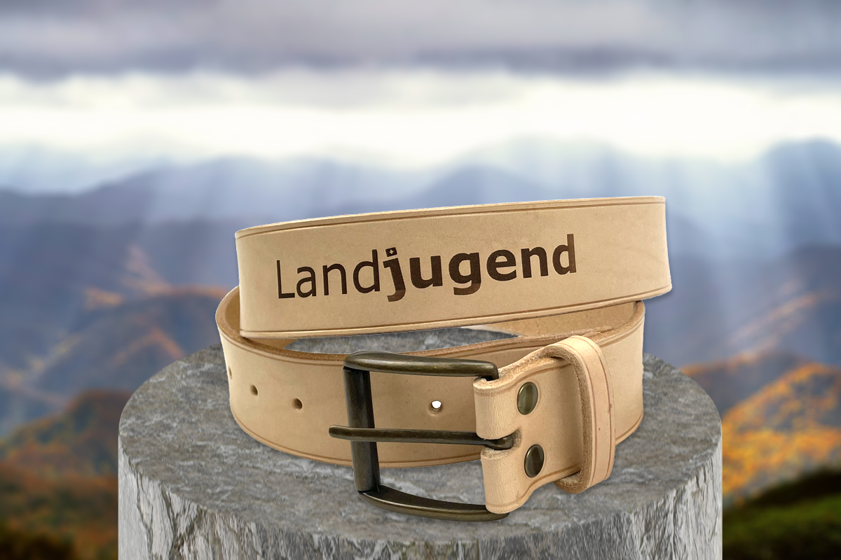 Der robuste Gurt kann mit Wunschmotiv/Logo personalisiert werden.